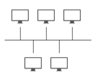 버스형 네트워크는 중앙회선 하나에 여러 노드들이 연결되어 있는 방식으로 근거리 통신망(LAN)에서 자주 볼 수 있는 형태이다. 하나의 컴퓨터가 장애가 생겨도 전체적인 네트워크에는 문제가 없다는 장점이 있으나, 통신 회선자체에 문제가 생기면 전체 시스템에 영향을 준다.