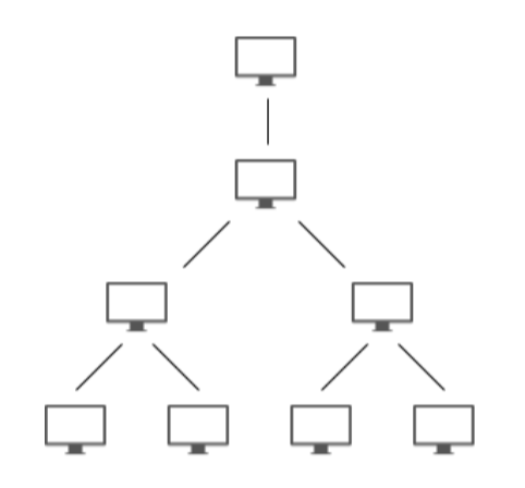 트리형 네트워크는 트리(Tree) 구조의 형태로 구성된 네트워크로, 통제 및 유지 보수가 용이하다. 하지만, 병목현상이 발생할 수 있고 상위 노드에서 장애 발생시 하위 노드들에게 전부 영향이 간다.