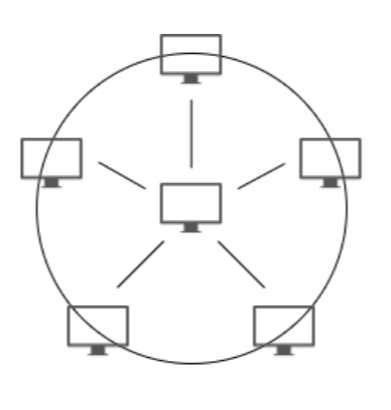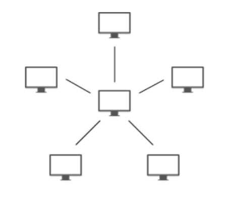 스타형 네트워크는 중앙에 있는 컴퓨터를 중심으로 다른 노드들이 연결된 중앙 집중식 형태이다. 유지보수 및 관리가 편하고, 단말 노드들이 고장나도 발견이 쉽고 시스템에 문제가 없다. 하지만, 중앙 집중식 형태라 중앙에서 문제가 생기면 시스템 자체에 문제가 생긴다.
