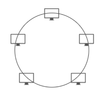 링형 네트워크는 인접해 있는 노드들을 연결하는 전송 형태이다. 전송매체 고장 시 발견이 용이하나, 단말의 추가 및 상제가 어렵다는 단점이 있다.